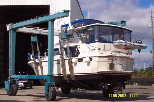 be hauled out at Dog River Marina to have props repaired and a shaft