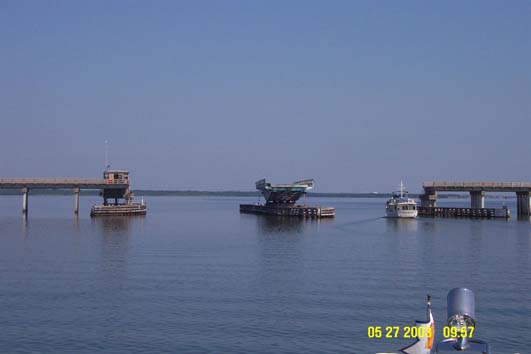There is affordable housing on the Florida ICW. There are also little fun islands like this one; boats were coming and going this Memorial Day holiday. Barge traffic towed by tugs and swing bridges are a part of this waterway, too.
