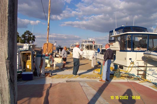 10/15 Hoppie’s Marina, Kimmswick, MO. Hoppie, wife Fern, & Cap’t Bob on the dock. Very friendly couple with a wealth of boat & river knowledge that they are happy to share. Nearly everyone stops here since it’s the last fuel dock for 204 miles.