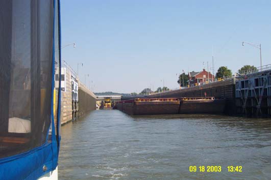 had our first experience locking through tied to a barge; we had only