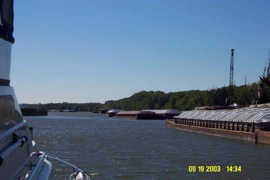 the shoreline while waiting for their tugs. Again the barge traffic