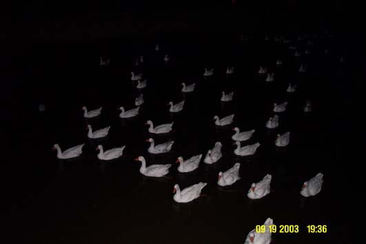 That night there were all these beautiful white ducks in the water