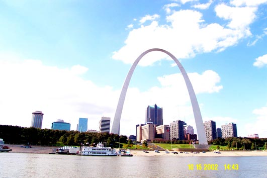 10/15 St. Louis bridges, arch and skyline. We left St. Charles this morning October 15, 2002, and we were finally on our way!